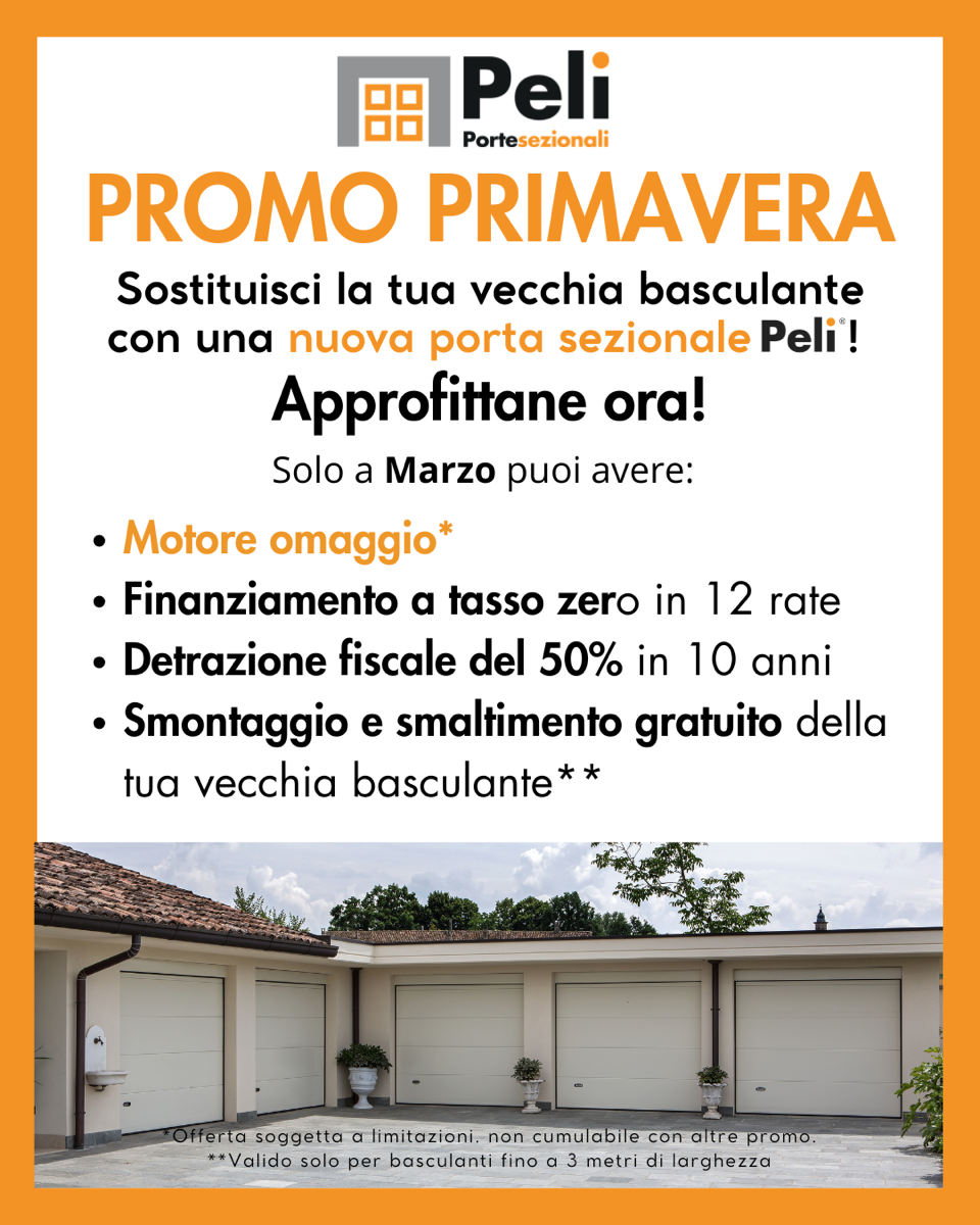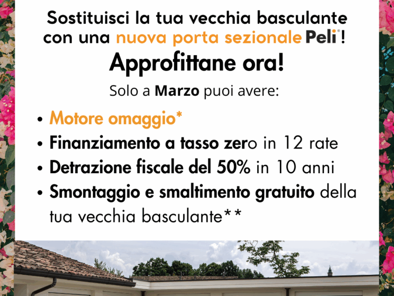 Vuoi sostituire la tua vecchia basculante con una nuova porta sezionale Peli? Approfitta dell’incredibile PROMO PRIMAVE