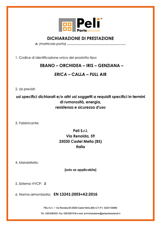 Peli Porte Sezionali vanta le certificazioni che attestano la qualità e la sicurezza dei suoi prodotti.